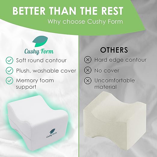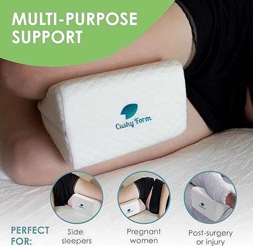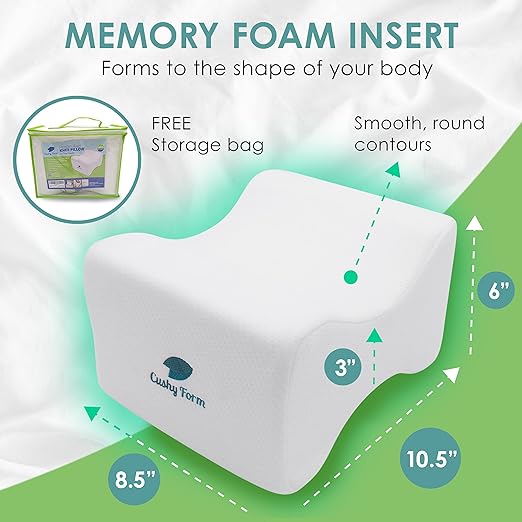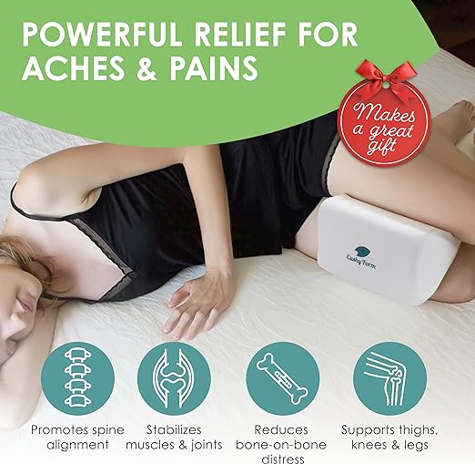 Contour Knee Pillow -These superior leg pillows for sleeping are made with premium memory foam for a comfortable all night’s sleep by elevating your upper knee. The therapeutic positioner for side sleeping also encourages better posture.